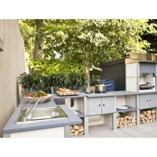 Программа St. Vincent специально разработана для садового расположения. Выполнена из совместимых модулей. Не требует укладочных и штукатурных работ. Легко разбирается и дополняется новыми модулями. Сделана из материалов, устойчивых к погодным изменениям. Духовка и раковина из нержавейки премиум-класса. Модуль гриль с топочной камерой из бетона и решеткой из нержавеющей стали 60х40 см.