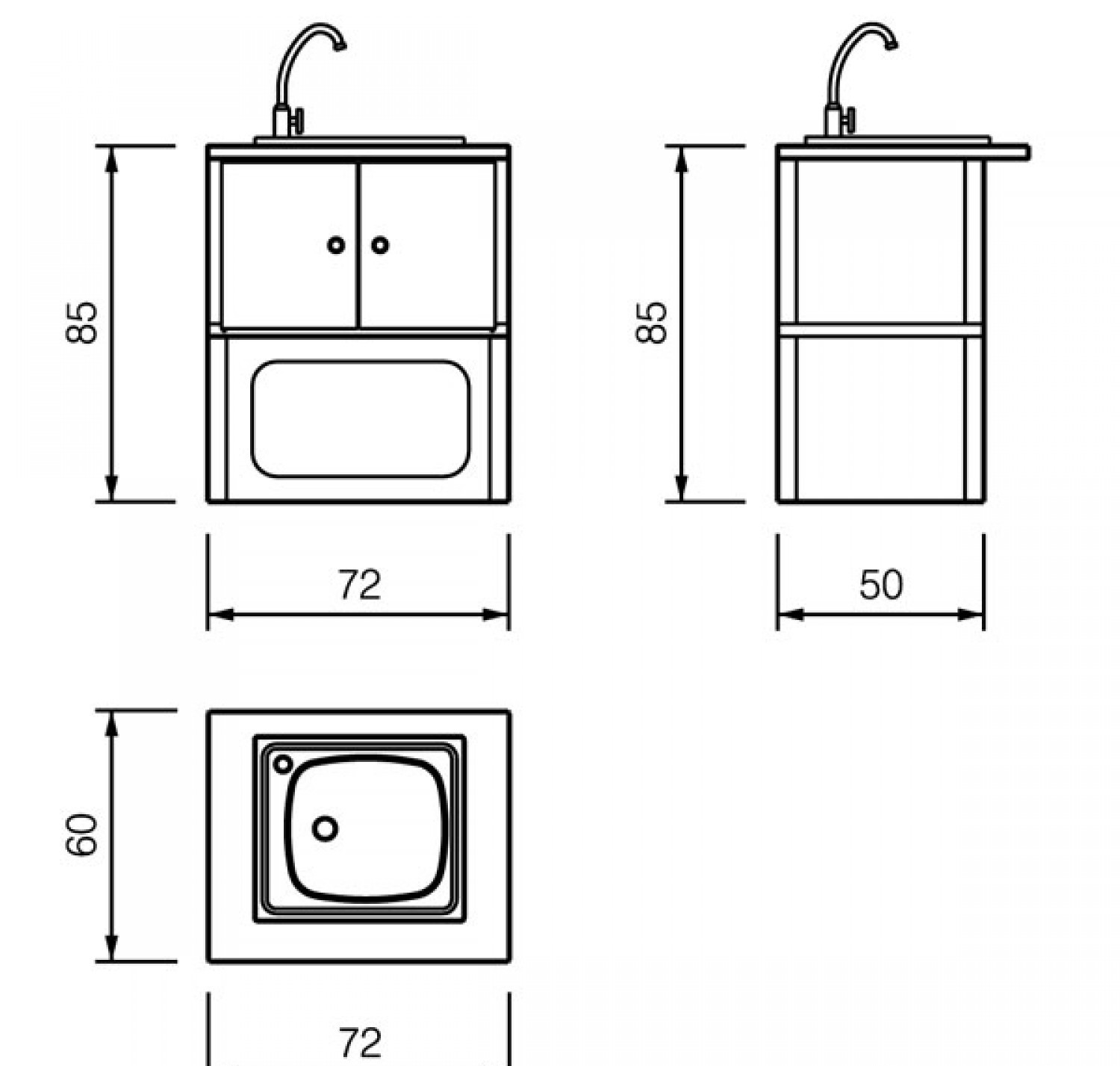 Модуль раковина с краном. Столешница со встроенной раковиной из нержавеющей стали и краном. С набором стальных дверец.