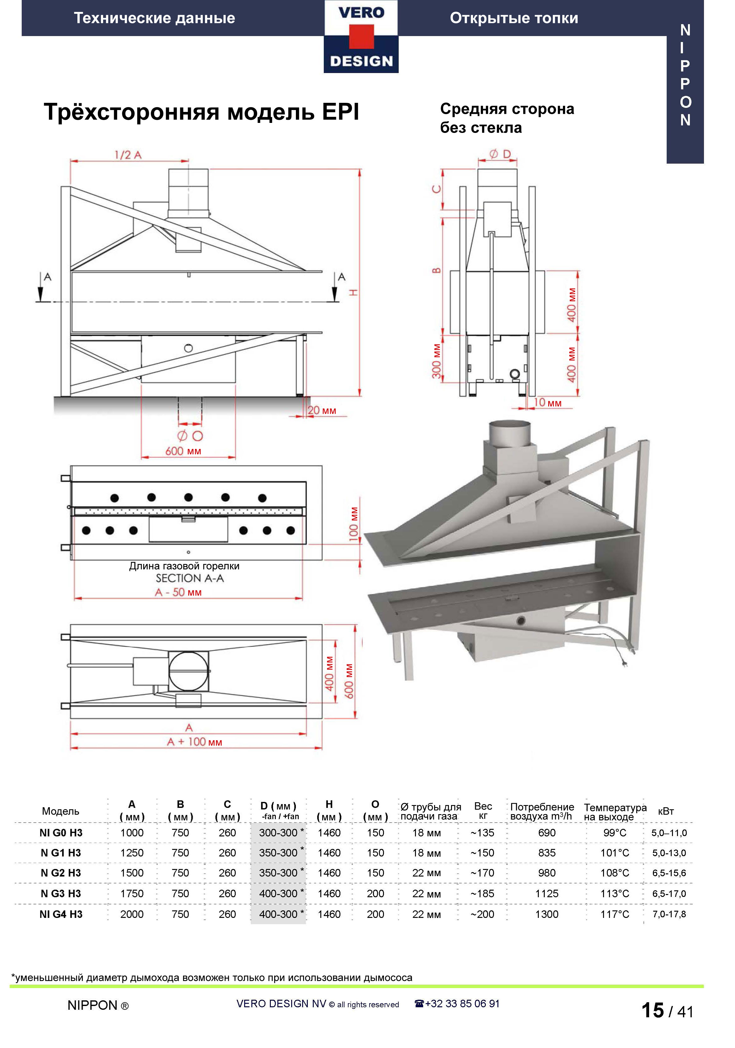 Газовый камин Vero Design Nippon NI G1 H3 G