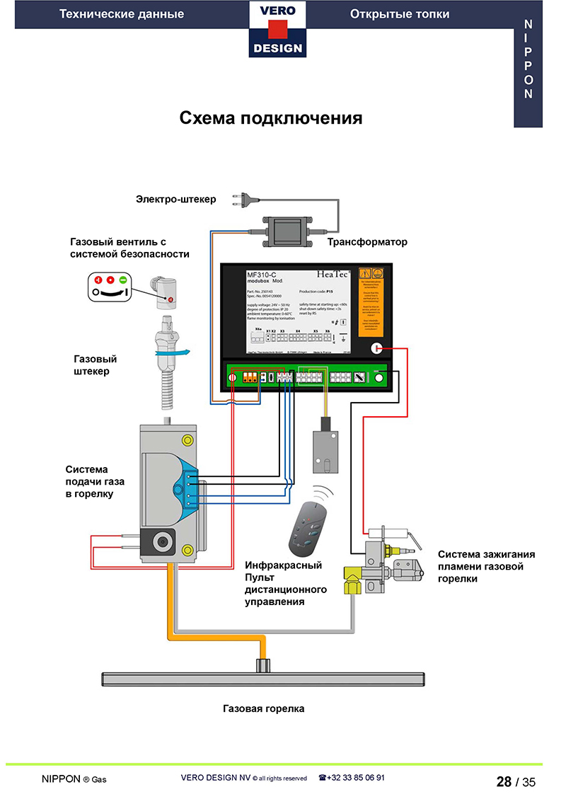 - Газовое соединение (штекер) со встроенной системой безопасности, перекрывающее подачу газа при превышении допустимого уровня температуры в месте соединения.