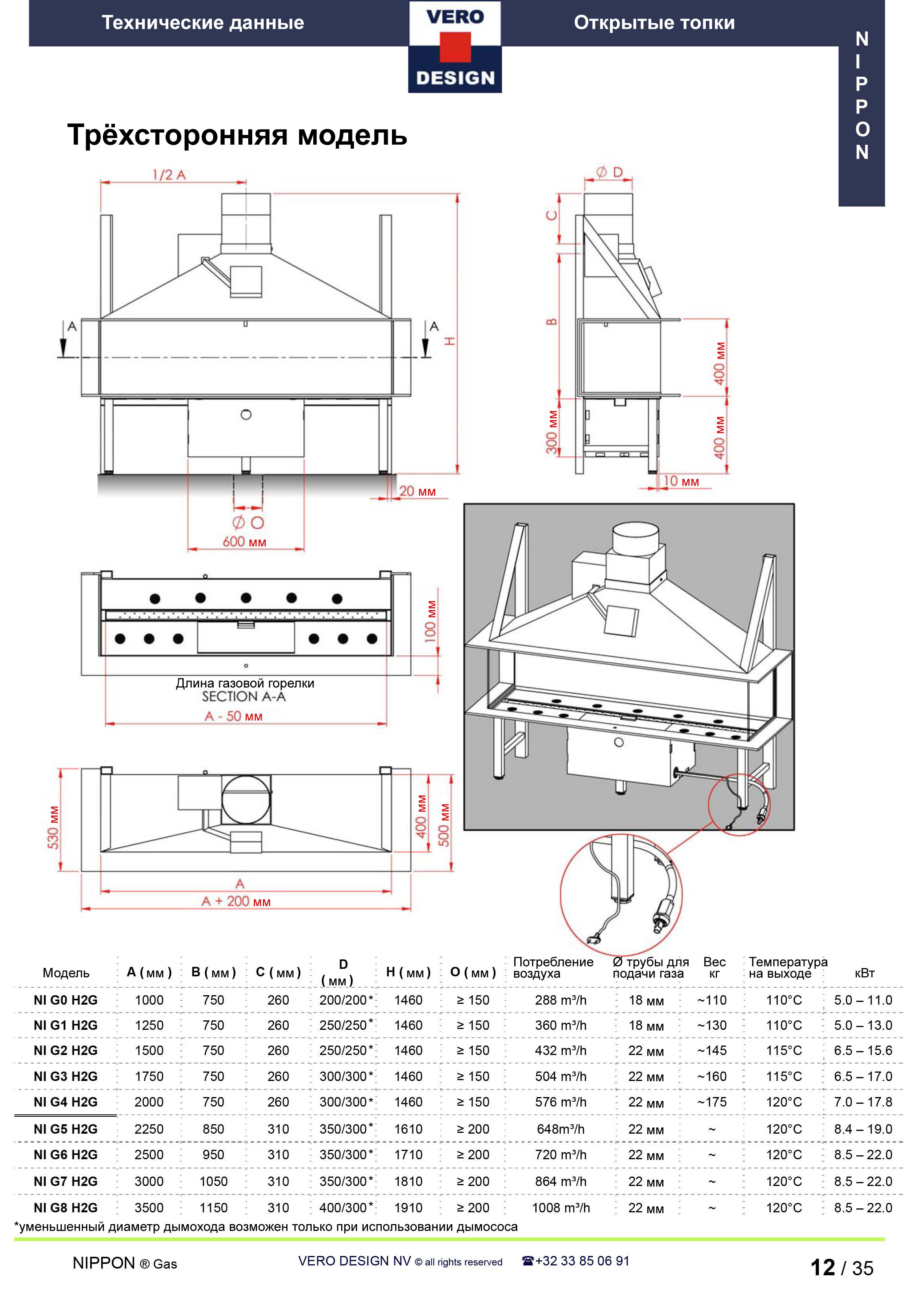 Газовый камин Vero Design Nippon NI G6 H2