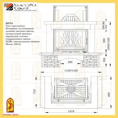Каминная облицовка Мета Азбука Камня Бета 700