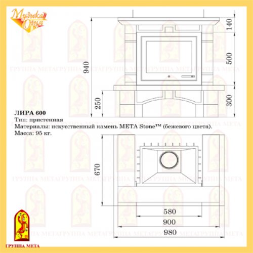 Каминная облицовка Мета Музыка Огня Лира 600