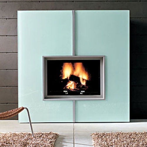 Стеклянный квадрат внушительных размеров служит облицовкой этого камина. В комплект входит закрытая топка Forte, версия с натуральной конвекцией.
