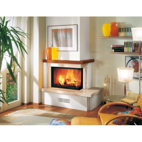Камин Parma является угловой моделью с широким обзорным очагом, через который будет очень приятно наблюдать за игрой живого пламени через топку. Также можно на максимально близком расстоянии осуществлять эту задумку – стеклянная дверка топки этому способствует. Закрытый очаг безопасен в плане противопожарной обстановки. В открытой топке есть особенность – из нее могут вылетать внезапные искры. Закрытый очаг же защищен от этого по максимуму.