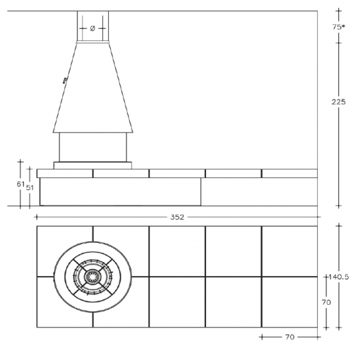 Камин совместим с топками M360 T (цилиндрический или конический кожух).