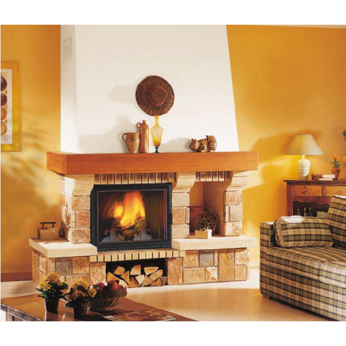 Этот уютный пристенный камин Aubusson в стиле кантри выглядит очень по-домашнему. Он изготовлен из камня Кастильон и грубо обработанного бута. Верхняя балка модели Aubusson выполнена из дерева. Снизу есть отделение для дров, сбоку от топки расположена декоративная ниша.