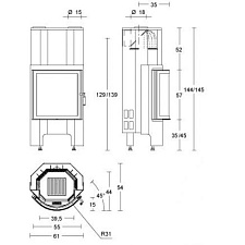 - - Номинальная мощность 15,5 кВт- Объем отапливаемого помещения 450 куб.м/ч- Загрузка двревесины, максимально допустимая 4,6 кг/ч- Расход древесины 3 кг/ч- Радиус дымоотвода 250 мм- Вес 320 кг