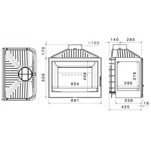 Топка L7 L (Liseo). С дымосборником. С левым боковым стеклом.