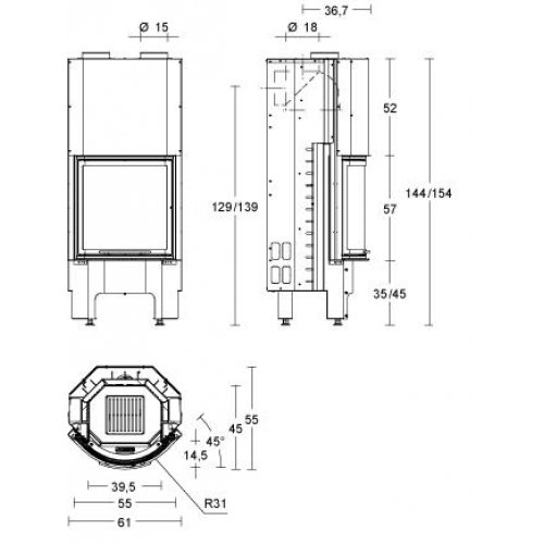 Кожух и теплообменник удерживают тепло, за счет чего оптимизируется уровень термального КПД и теплоотдачи. Очаг камина изготовлен таким образом, чтобы поступающий первичный и вторичный воздух предварительно нагревался и улучшал качество горения.