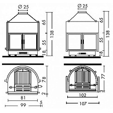 • Отопление: Естественная конвекция, лучистый обогрев и дополнительная вентиляция с искусственной тягой через систему Multifuoco System® или Multifuoco System Plus, воздуховодов, принудительная вентиляция комплект