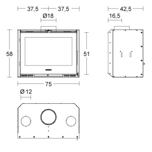 • Проем:  Дверца из эмалированной стали с жаропрочным стеклом, выдерживающим температуру до 750°, с самообдувом. Дверца на петлях.