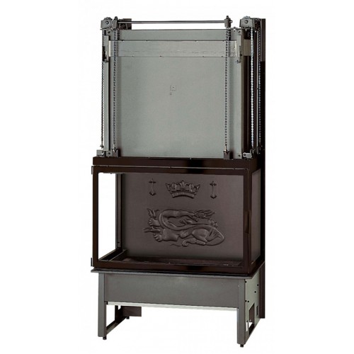 Трехсторонняя топка с прямым обзорным стеклом. При изготовлении применяется сталь. Задняя стенка топки из толстого чугуна. Дверца с подъемным механизмом. Высокий дымосборник.