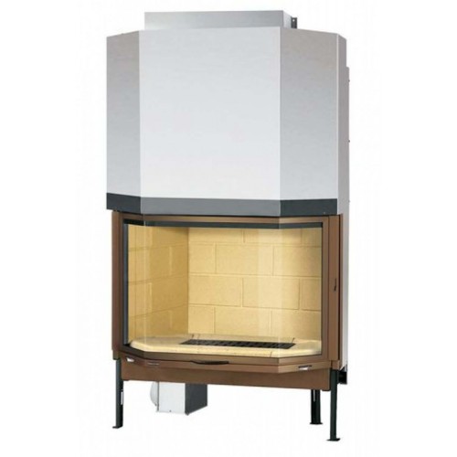 Каминная топка призматической формы, выполненная из толстостенной стали. Внутренние стенки и низ очага выложены шамотным камнем. Дверь с декоративной каймой из золотистого металла. В качестве горючего используются дрова. Дверь открывается в сторону и вверх. Чугунная колосниковая решетка.