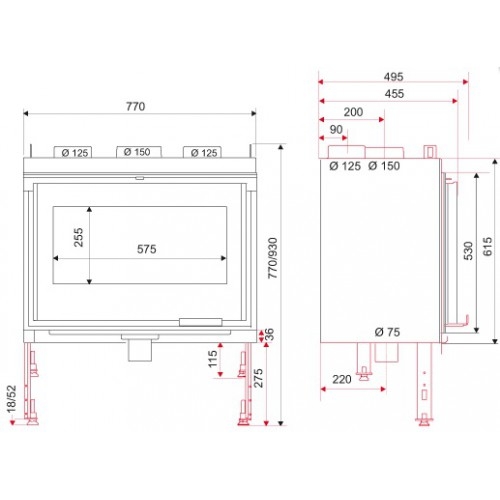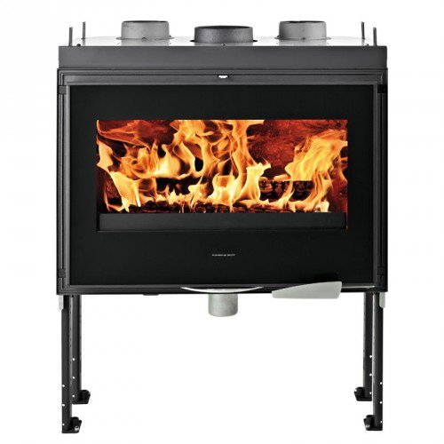 Топка с технологией FSU. Дверь открывается вбок. Наружный забор воздуха. Регулируемые ножки. Обдув стекла.