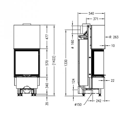 - Опциональная комплектация дополнительной задней дверцей для закладки дров из подсобного помещения.