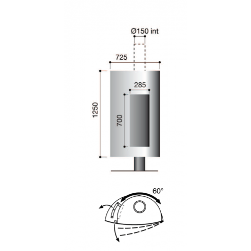 Stofocus 2 поворачивается на 60° с помощью системы шарикоподшипников, расположенной в основании камина.