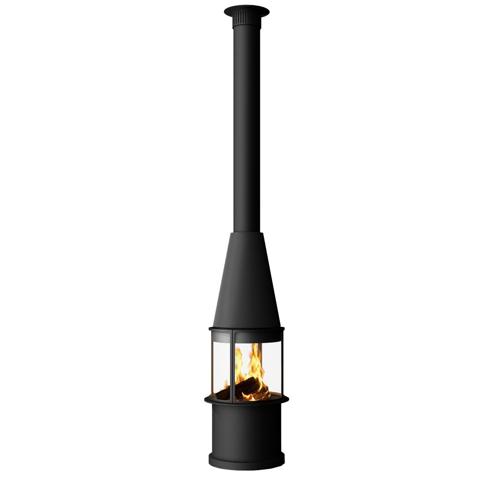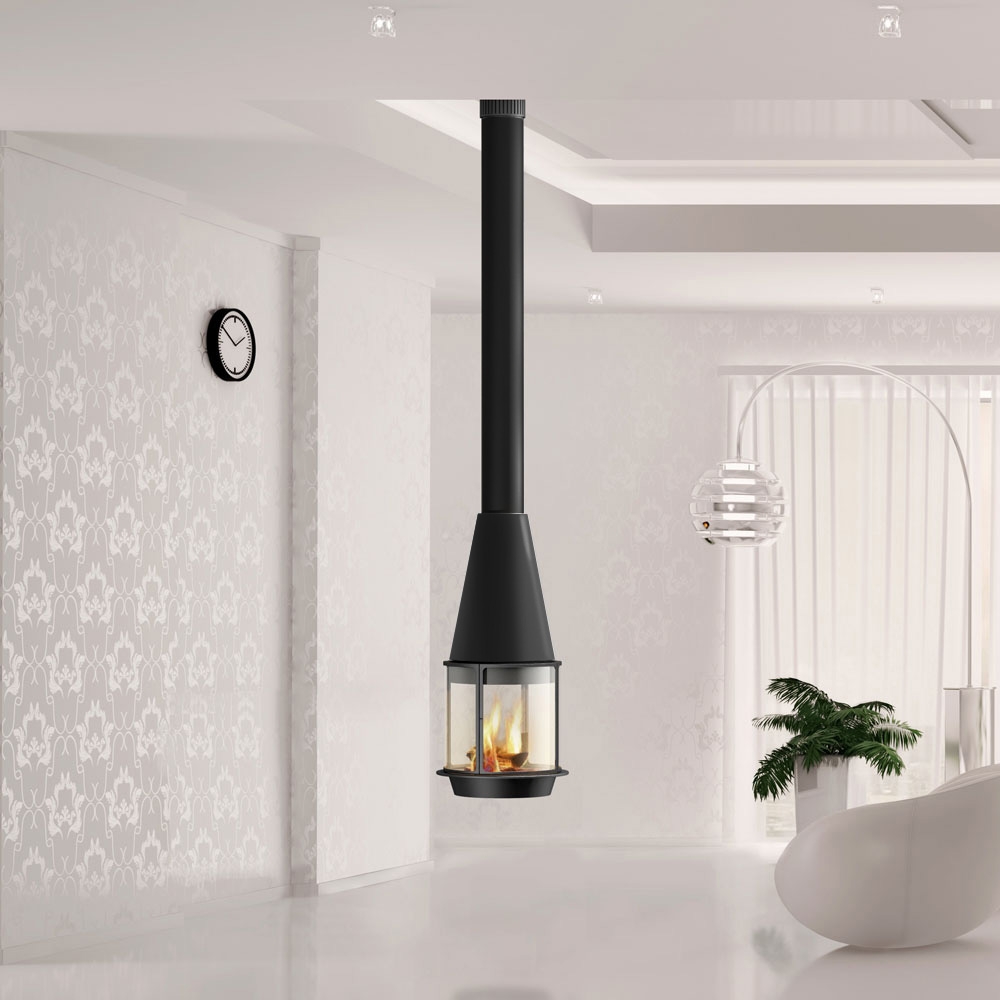 Центральный подвесной цилиндрический камин с максимальным обзором огня.