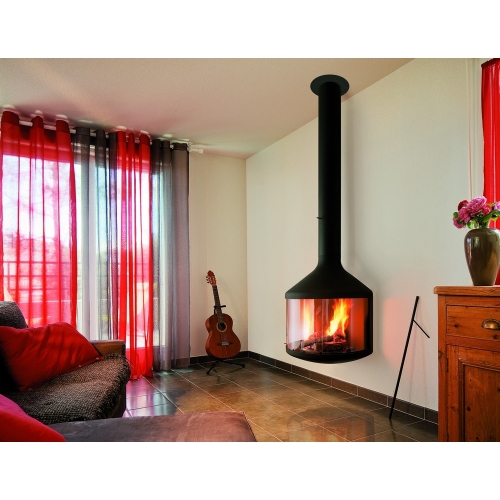 Закрытый камин Hubfocus крепится к стене с помощью монтажной пластины. Способен работать с открытой или закрытой дверцей.