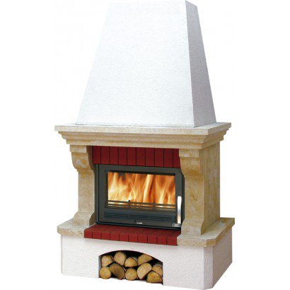 Стиль модели — рустикальный, подчеркнутый высоким дымоходным колпаком, деревянной каминной балкой и каминной облицовкой из природного камня. Каминная модель, предназначенная для отопления больших помещений.