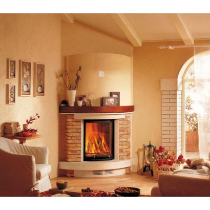 Топка в камине Francia сделана также в полукруглом, овальном формате, тем самым представляя утонченный силуэт и плавность стеклянных линий. Топка оформлена стеклянной жаропрочной дверкой, которая оказывает благоприятное воздействие на полноценные обогревательные способности камина. В закрытом варианте топки дрова горят медленно и тепло из топки постепенно охватывает пространство дома, тем самым увеличивая время, в которое ваш дом останется протопленным. Камин – это по сути, печь в упрощенном формате. Теплый воздух из камина сразу же поднимается вверх, задерживаясь около оконных рам и наружных стен, потом он опускается все ниже и ниже, а затем обратно поступает к стенкам камина. Такая конвективная система работает почти во всех закрытых моделях камина. Полукруглая топка в модели Francia сделана таким образом, что можно очень удобно наблюдать за горящими угольками и пламенем, так как топка из стекла повернута таким образом, что удобно смотреть из разных участков комнаты.