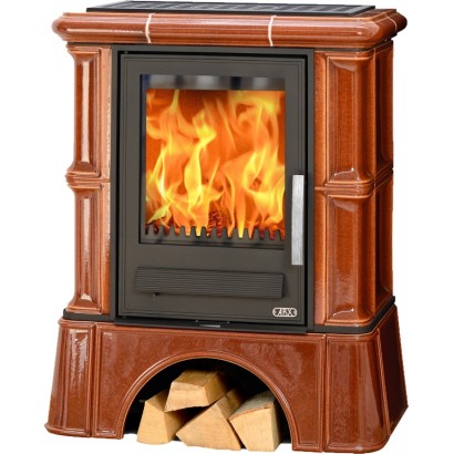 Кафельная печь Bavaria K - вставка комбо, кафельный цоколь каштан