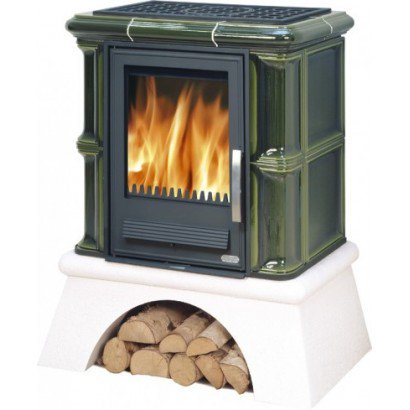 Кафельная печь Bavaria K - вставка комбо, прямой цоколь бутылочное стекло, с теплообменником (4,2 кВт в воду)
