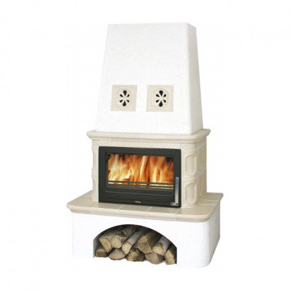 Кафельная печь-камин Laponie соединил в себе два стиля оригинальность и кантри, кафельная облицовка придает