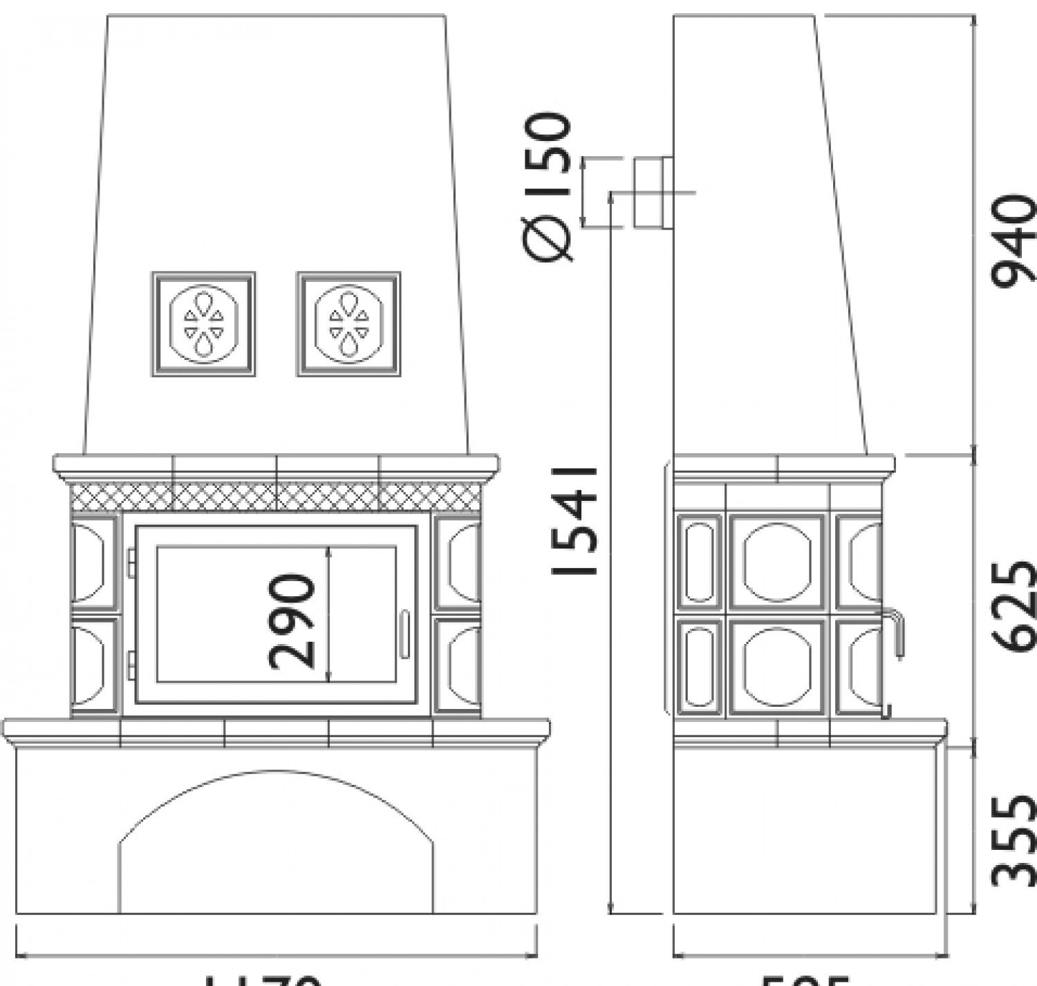 Для облицовки печи применяется печной кафель, который является наилучшем накопителем тепла, он быстро нагревается и очень долго остывает. Поэтому после прогорания дров Ваш дом будет обогреваться за счет отдаваемого тепла облицовки еще на протяжение 5–6 часов. За час печь в номинальном режиме расходует 3,2 кг сухих дров.