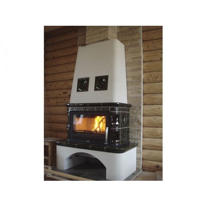 Кафельная печь- камин Laponie по красоте и техническим данным ни чем не уступает большим каменным каминам. Вставка печи стальная. Цветовую гамму кафеля можно подобрать на Ваш вкус: песчаная, зеленая, коричневая. Внизу печи как и во многих печах АВХ есть ниша для дров.