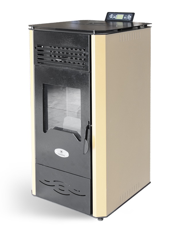 Мощности камина Termal 10 Vent вполне достаточно для отопления небольшого склада, жилого дома, дачи, ресторана или оранжереи. В данной модели имеется дополнительный вентилятор, который обеспечивает канальное распределение горячего воздуха. Пеллетный камин практически не требует времени на монтаж, поскольку представляет собой полностью готовую систему для отопления.