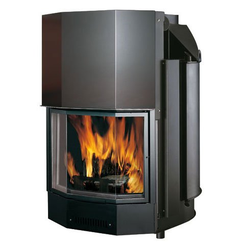 Топка с водяным контуром из толстой стали, способная производить горячую воду, поступающую в контур системы отопления и на радиаторы, а также производить горячую техническую воду. Дверца призматической формы с подъемом вверх. Камин может устанавливаться как пристенный или как фронтальный.