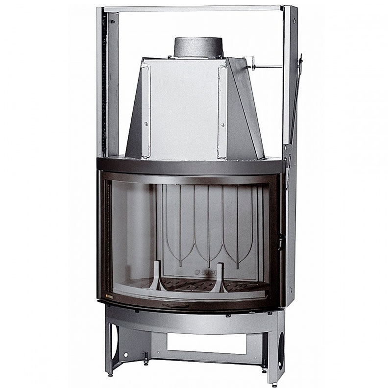 Чугунная вставка. Дверца открываемая наверх и вбок с закругленным стеклом.