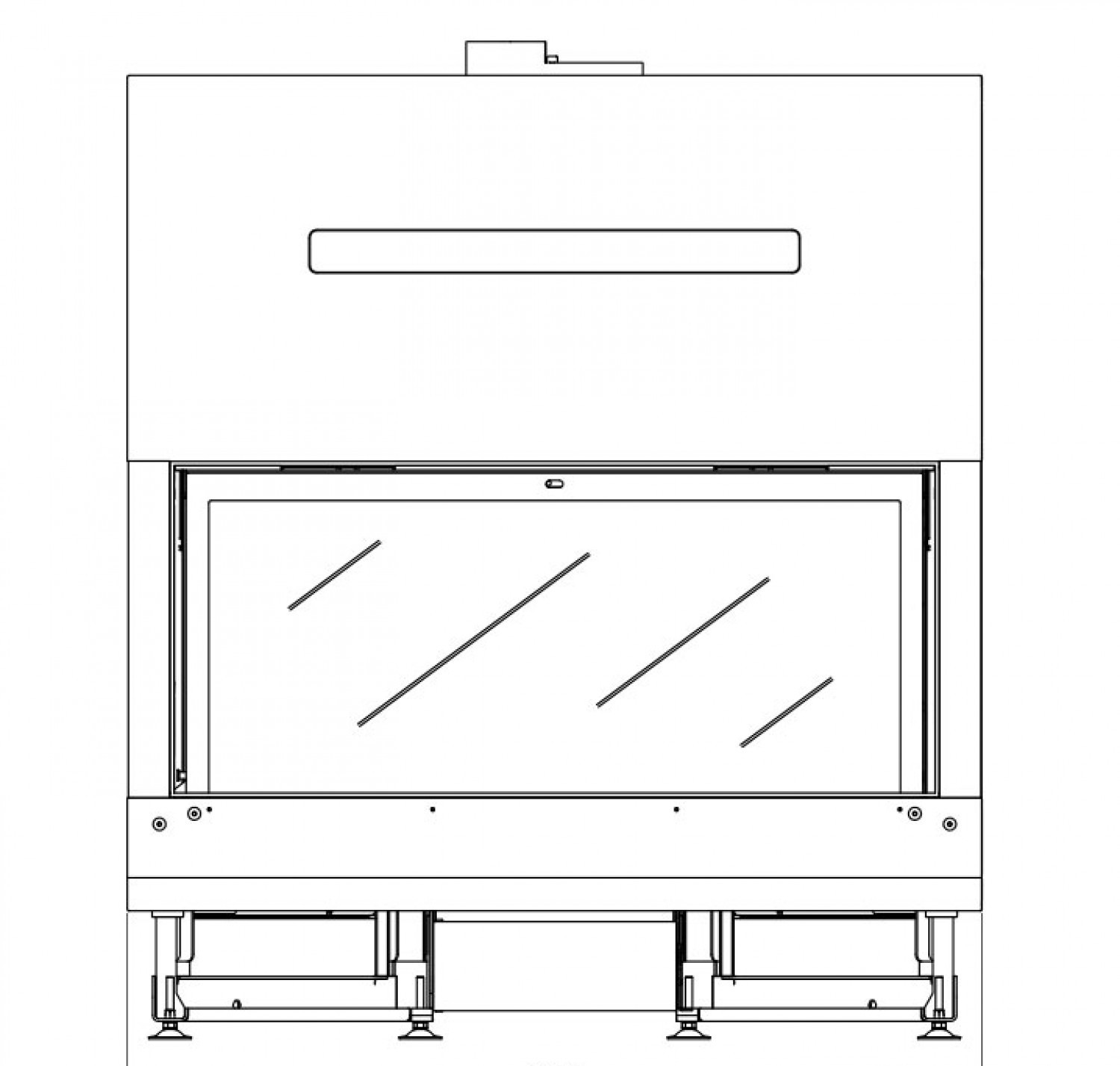 Односторонняя стальная топка с плоским стеклом. Дверца с подьемом вверх. Скошенные углы.