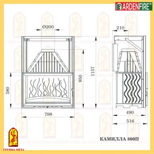 Чугунная топка Мета Ardenfire Камилла 800П