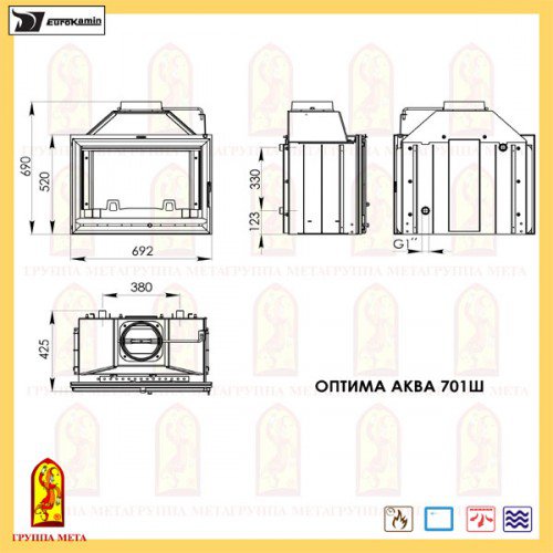 Чугунная топка Мета Eurokamin Оптима Аква 701Ш