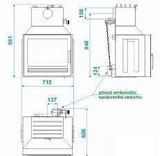 Каминная топка с прямым стеклом. Уменьшенная монтажная глубина. Топочная камера футерована шамотом. Подъёмный механизм двери (система Easy-Lift). Ширина дверки 1010 мм. Высота дверки 458 мм. Возможно подключение воздуха извне.