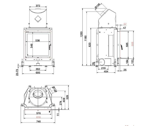 Топка КК 57/55 без подъема с одним плоским стеклом - 1 шт.