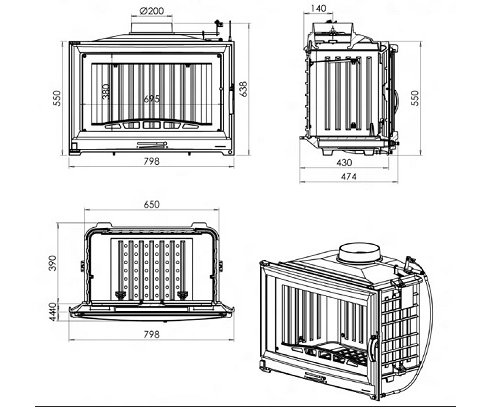 Полностью чугунная топка с боковым открытием двери.