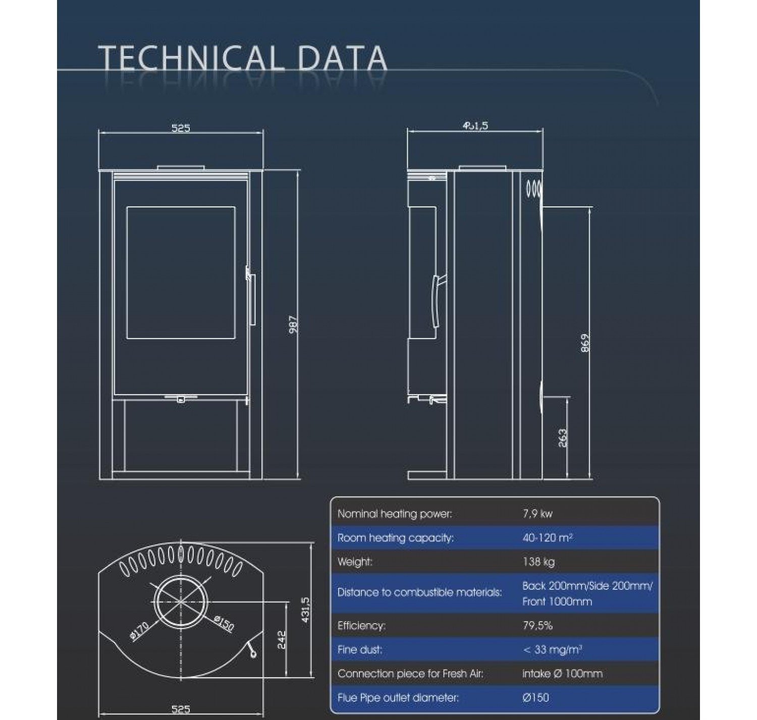 • Диаметр дымохода, (мм)