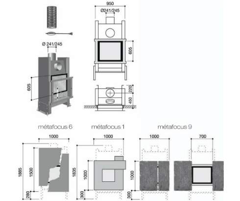 Фасады Métafocus также существуют со встроенной поддерживающей рамой и могут быть установлены с топками других производителей.