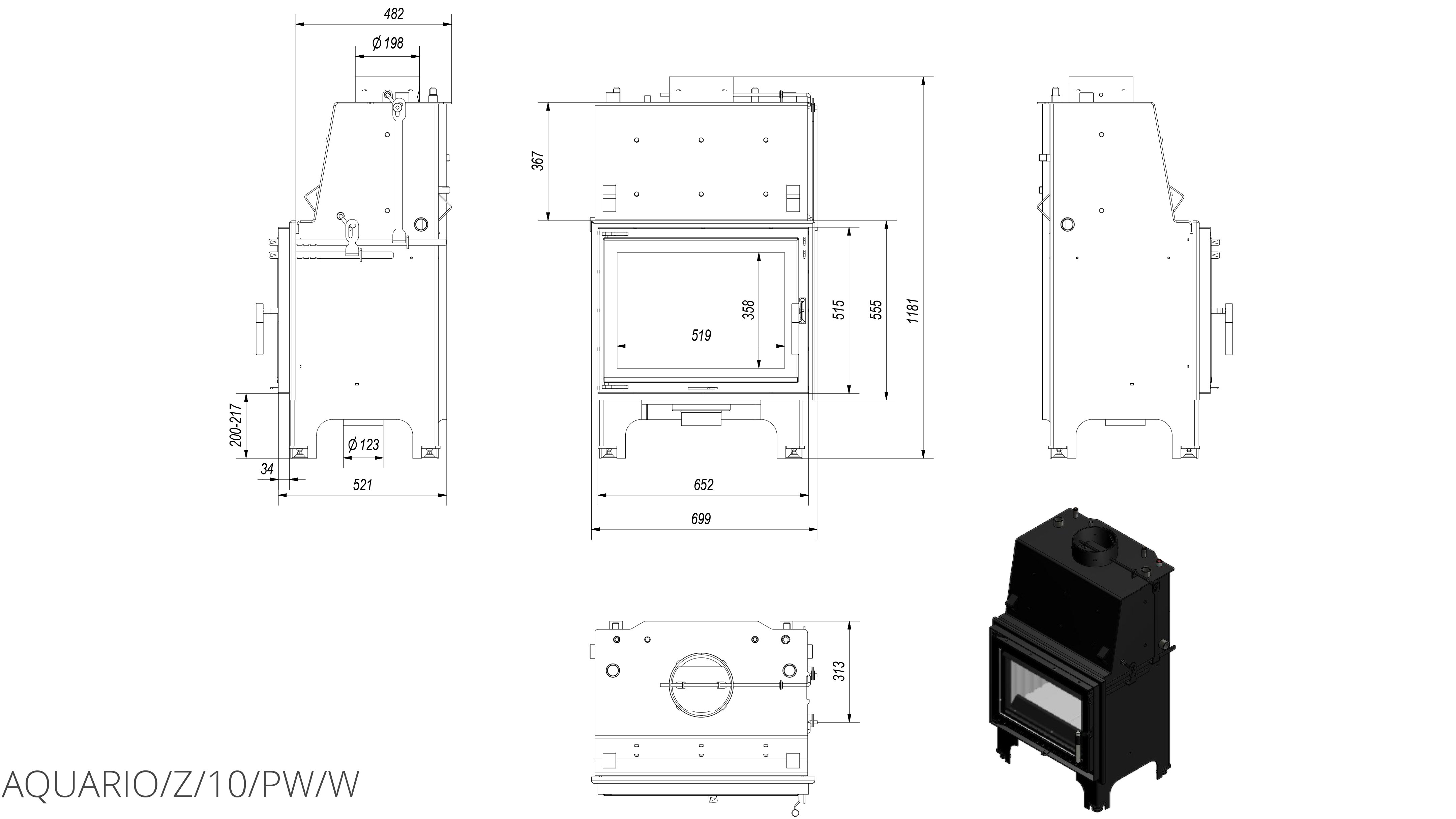 Каминная топка Kratki Aquario/Z/10/PW/W