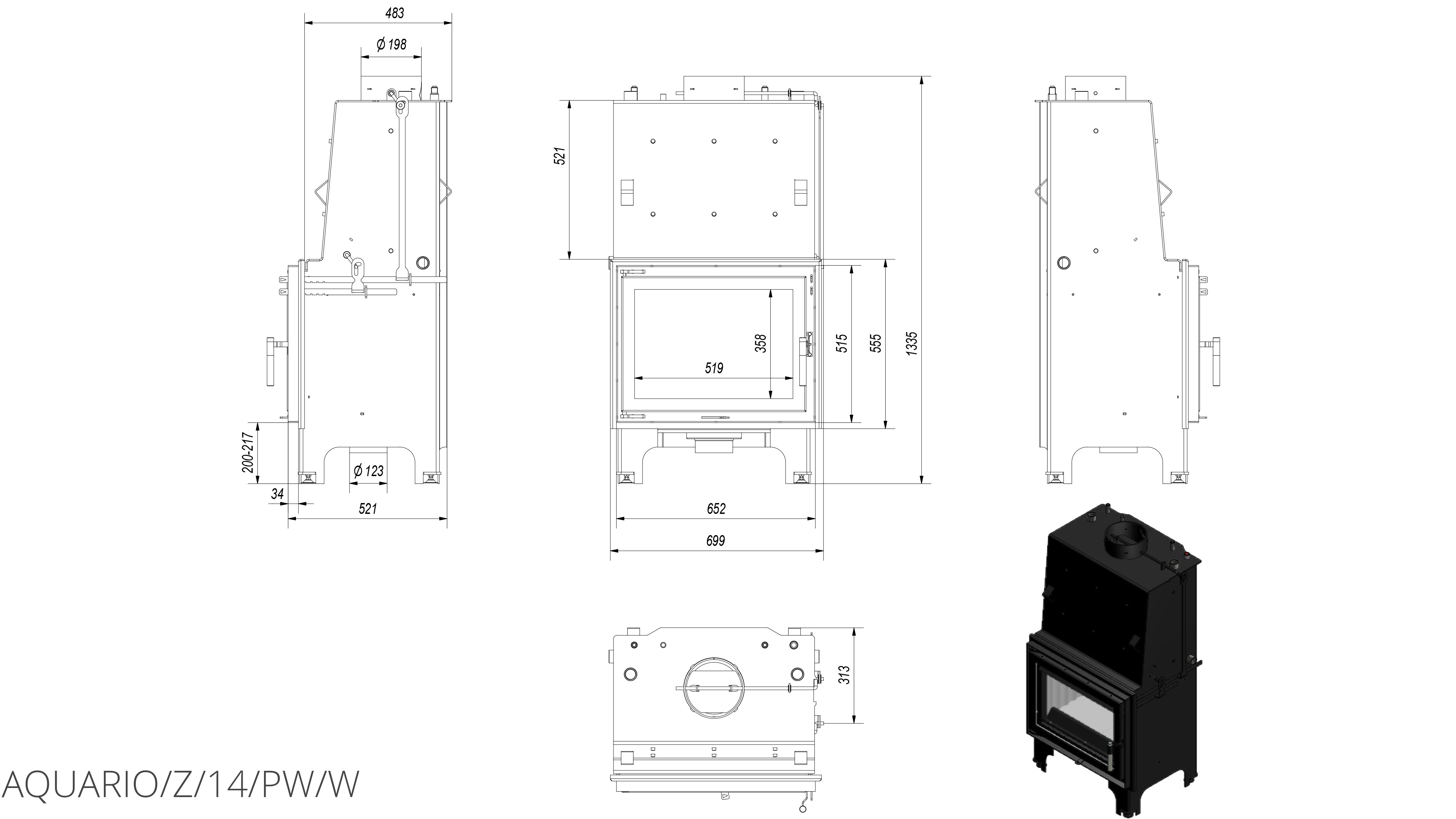 Каминная топка Kratki Aquario/Z/14/PW/W