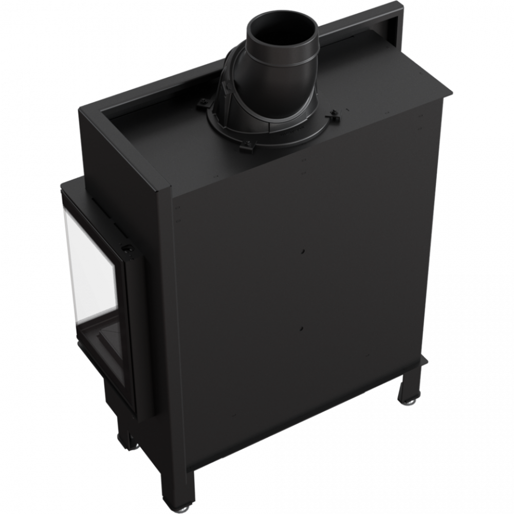 - Модель оснащена подвижным дымоходным отверстием, так что во время монтажа нет необходимости покупать дополнительные колена. Можно легко подобрать угол подключения топки к каминной инсталляции.