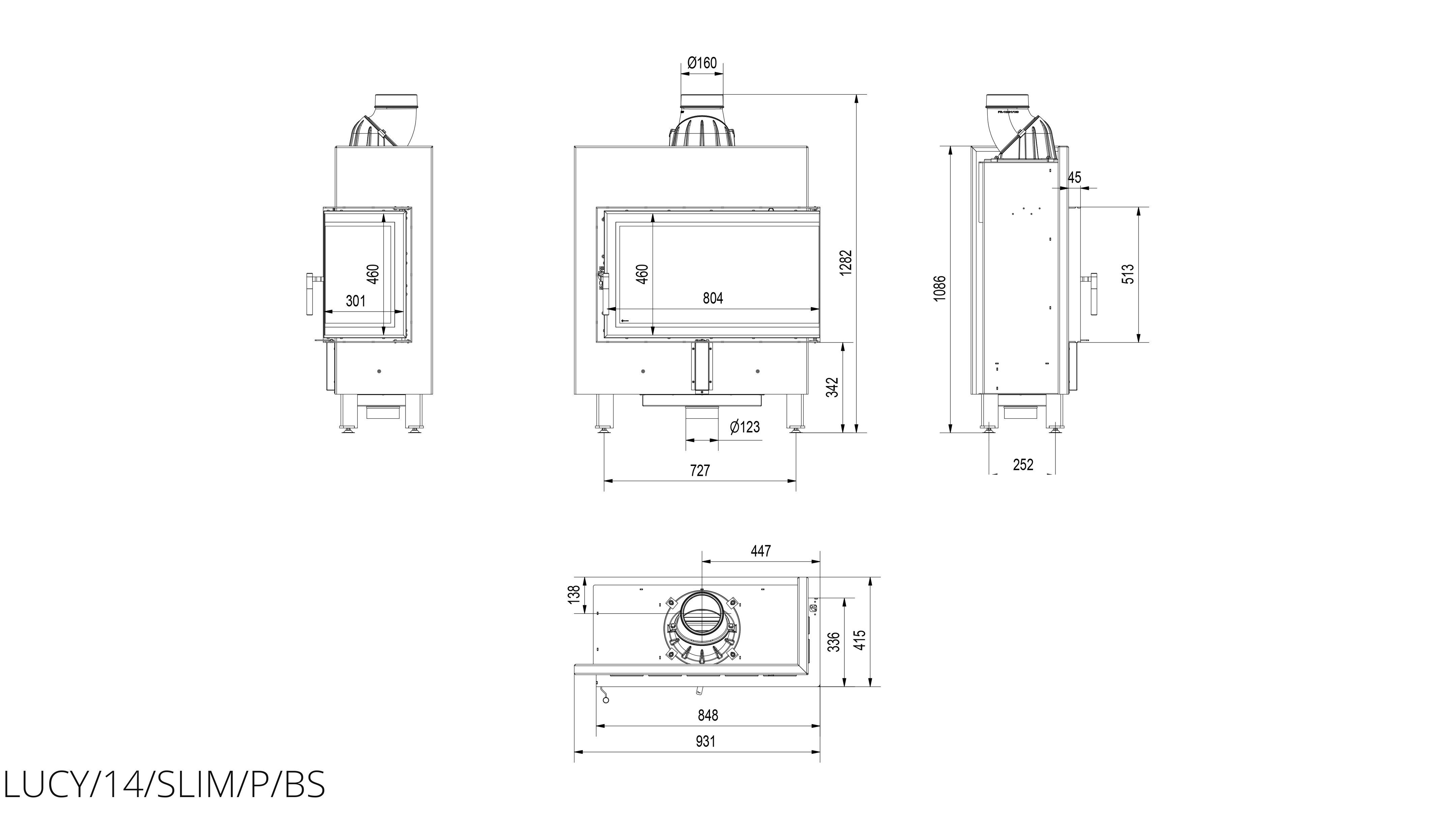 Каминная топка Kratki Lucy/14/SLIM/P/BS