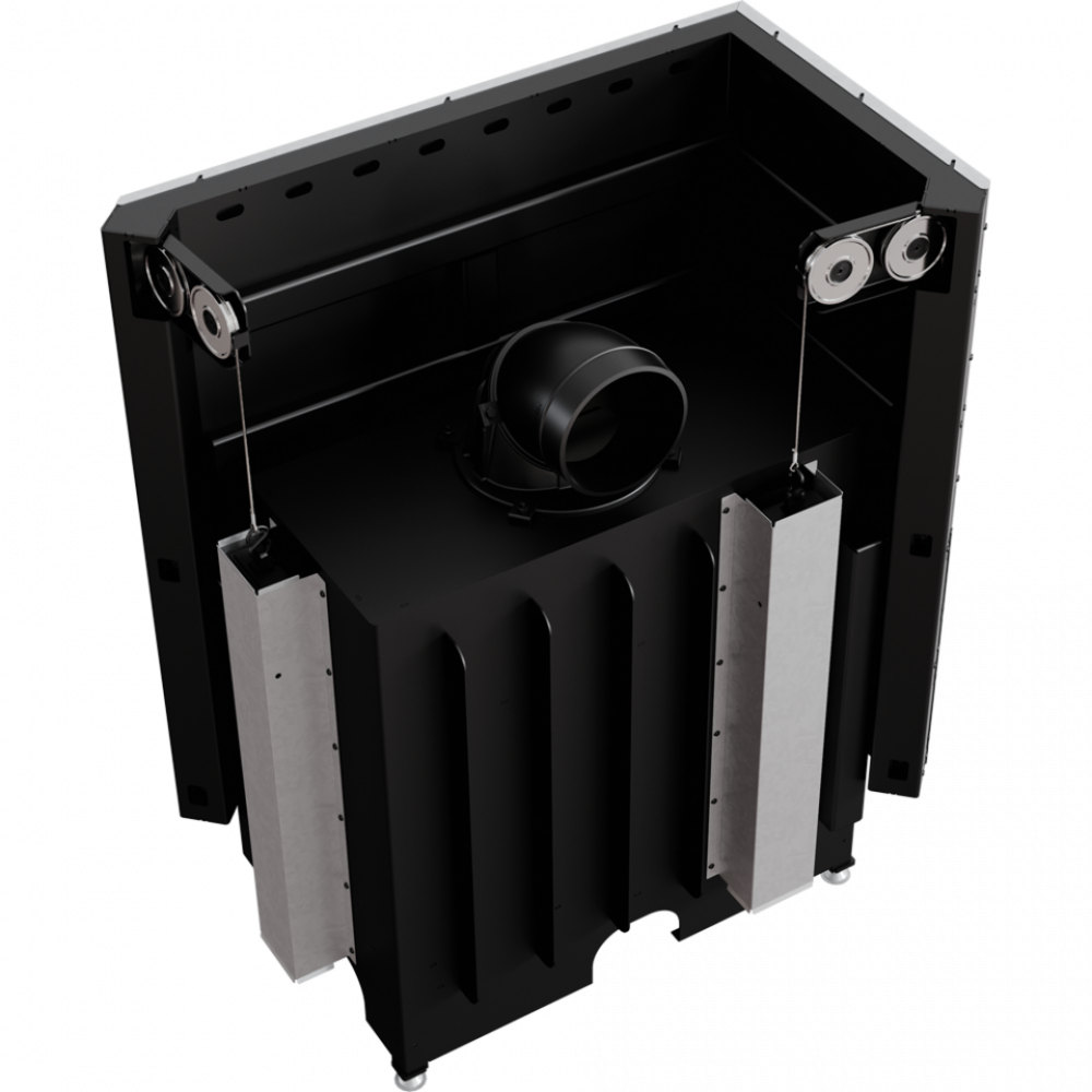 Предназначается для установки в угол помещения, для этого она оснащена большим Г-образным окном из жаропрочной стеклокерамики. Особенность данной модели является вертикальный подъем дверцы для закладки дров, что соответствует современным тенденциям в мире каминостроения.