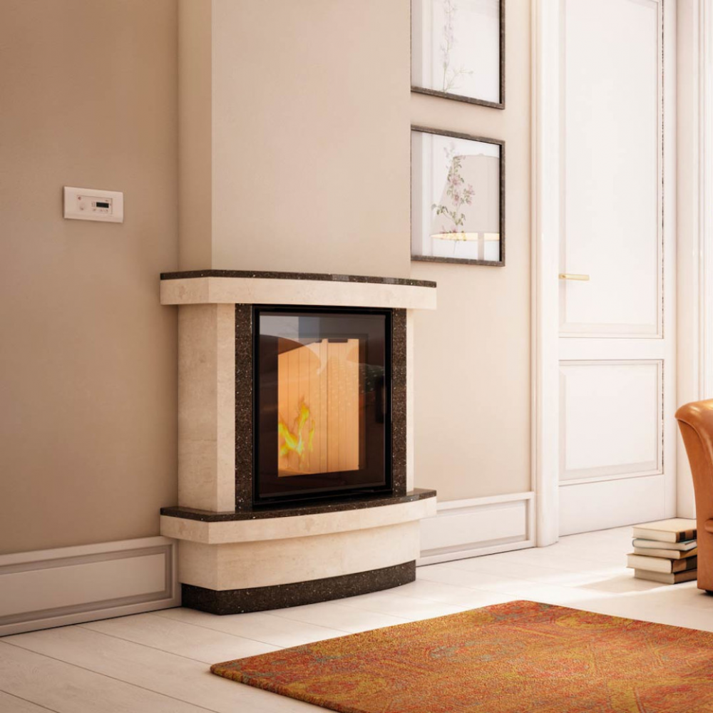 - Декоративная стеклянная панель типа glass, которая выдерживает температуру до 660 °C и предоставляет камину современного и элегантного вида, оптически увеличивает переднюю часть топки.