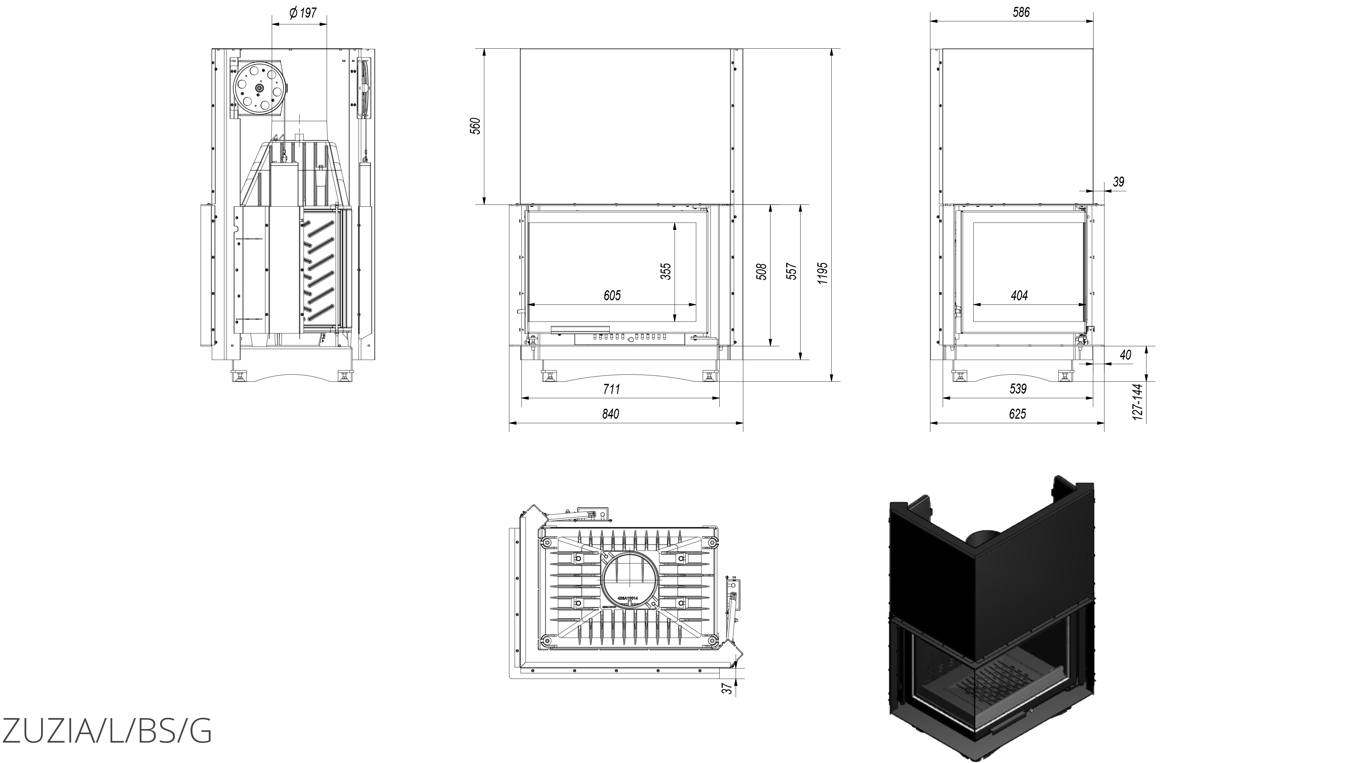 Zuzia/L/BS/G (Г-образное стекло слева, гильотина) – популярная серия встраиваемых каминных топок польского производителя Kratki. Топка-вставка с угловым стеклом без перегородок с левой стороны и вертикальным подъемом дверцы.