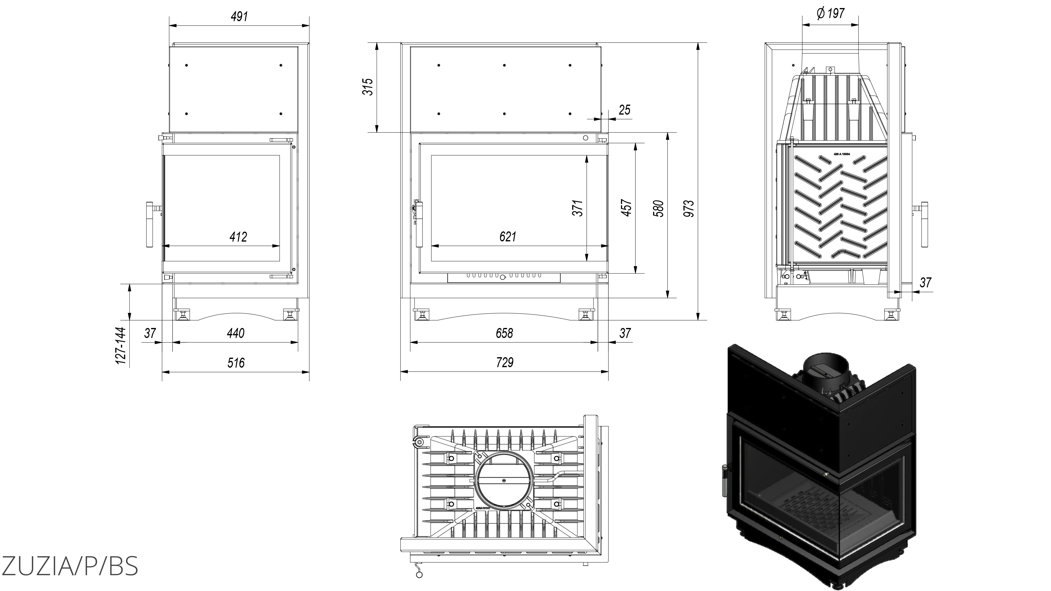 Каминная топка Kratki Zuzia/P/BS
