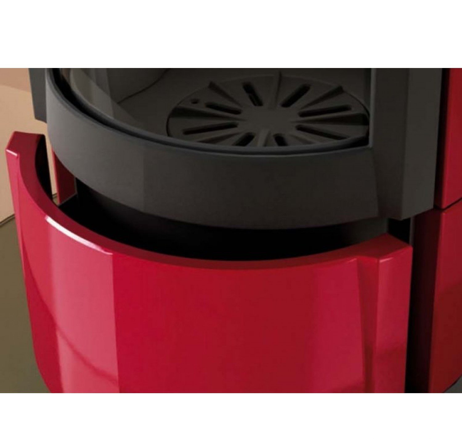 Возможные варианты цвета: белый и красный. Есть сиcтемы первичного воздуха, вторичного воздуха и третичного воздуха. Изогнутые дверцы топки сделаны из керамического стекла. Керамические детали выдерживают до 750°C. Представленная печь-камин на вращающемся основании (Угол вращения - 90 град.). Наружные плиты изготовлены из майолики (цвет - бордо, белый инфинити).